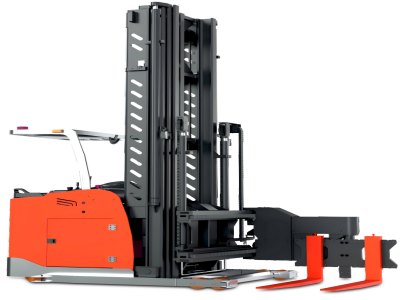 This is an electric reach forklift that can significantly enhance productivity.